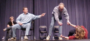 | Improv Shows -Where we've been: Von Ayres Cultural Centre Chatham Retirement Centre First Night 2000 Chatham Cultural Centre Studio One Wish Centre First Night 2001 Children's Treatment Centre Christ Church First Night 2002 Kiwanis Theatre Families First 2003,2004,2005 What you can book us for: Fund Raisers Corporate Parties Charitable and Non-Profit Organizations Employee Events Reunions Business Meetings Holiday Parties You name it and we'll be there! Telephone 519.436-0583 to book your show Whatever your event, you receive guaranteed laughs at very reasonable rates. Contact us and we can design a show around your needs and budget. To schedule us for your next event or for booking information just send us an email . COMING SOON DR. SOAP - a FULL INTERACTIVE IMPROV EXPERIENCE |